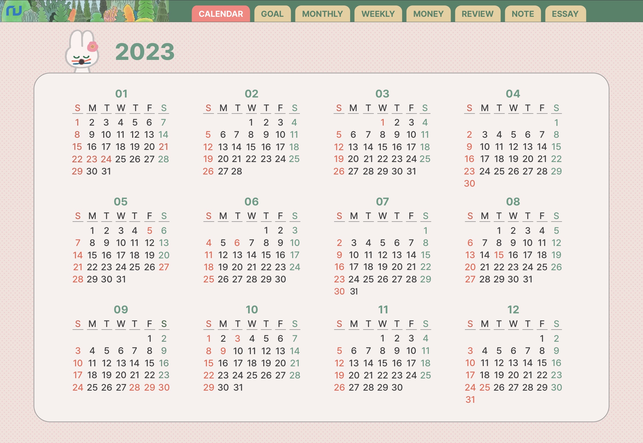 2023년 달력과 월간계획