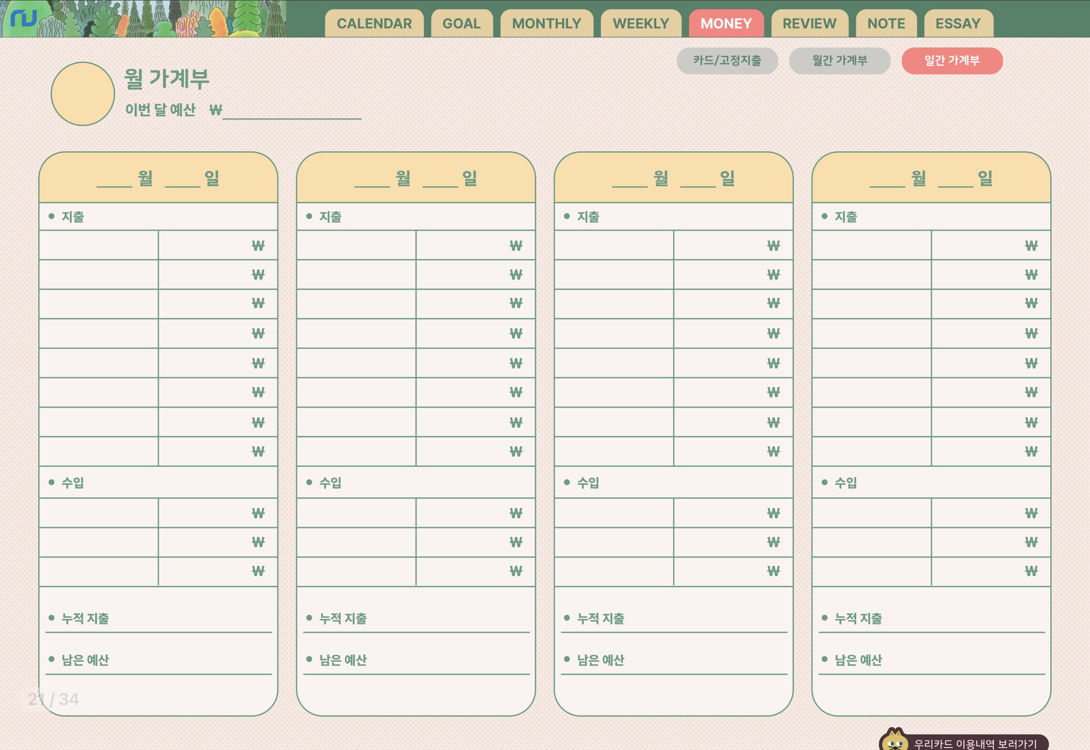 또 맘에 드는 것은 가계부입니다