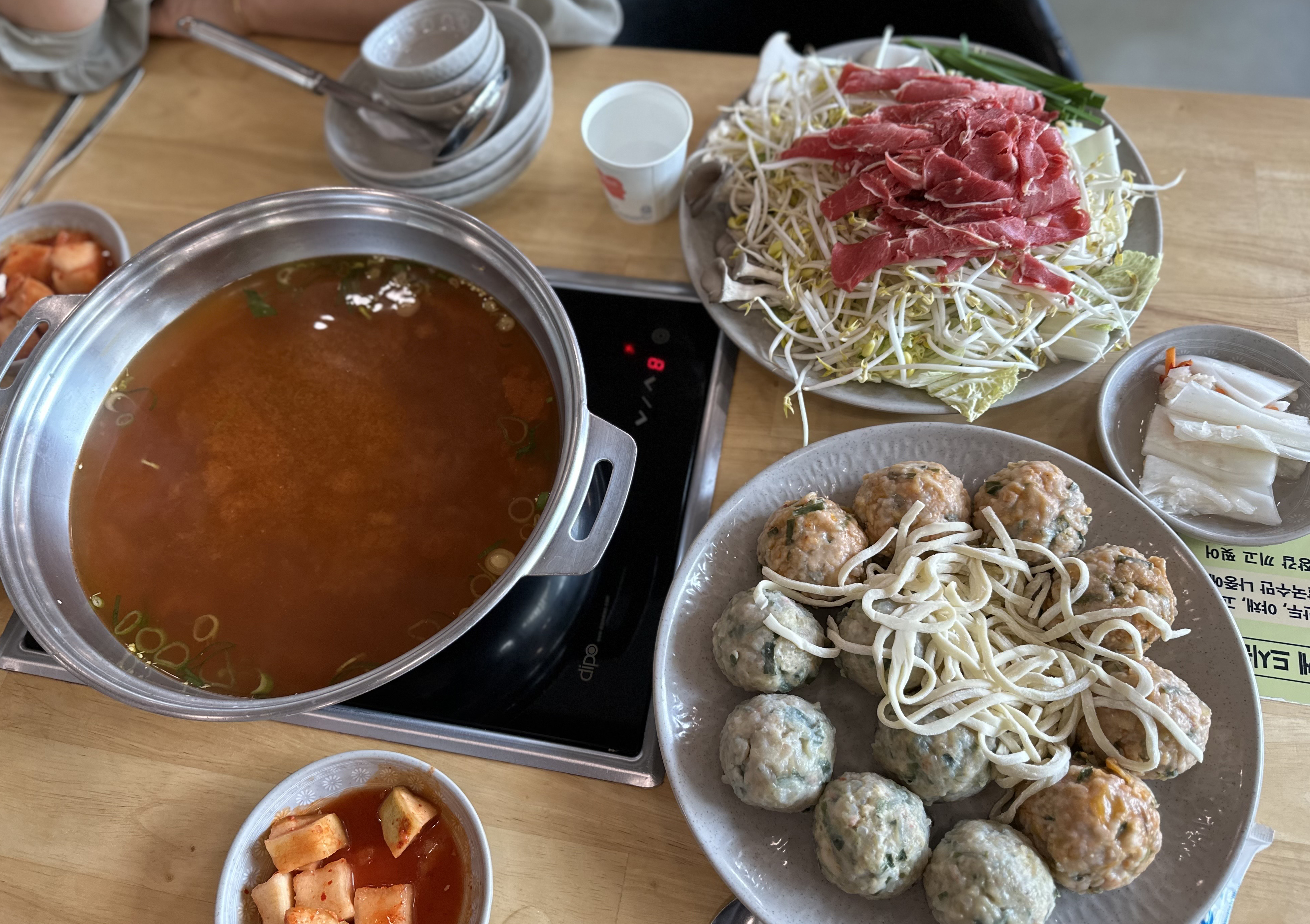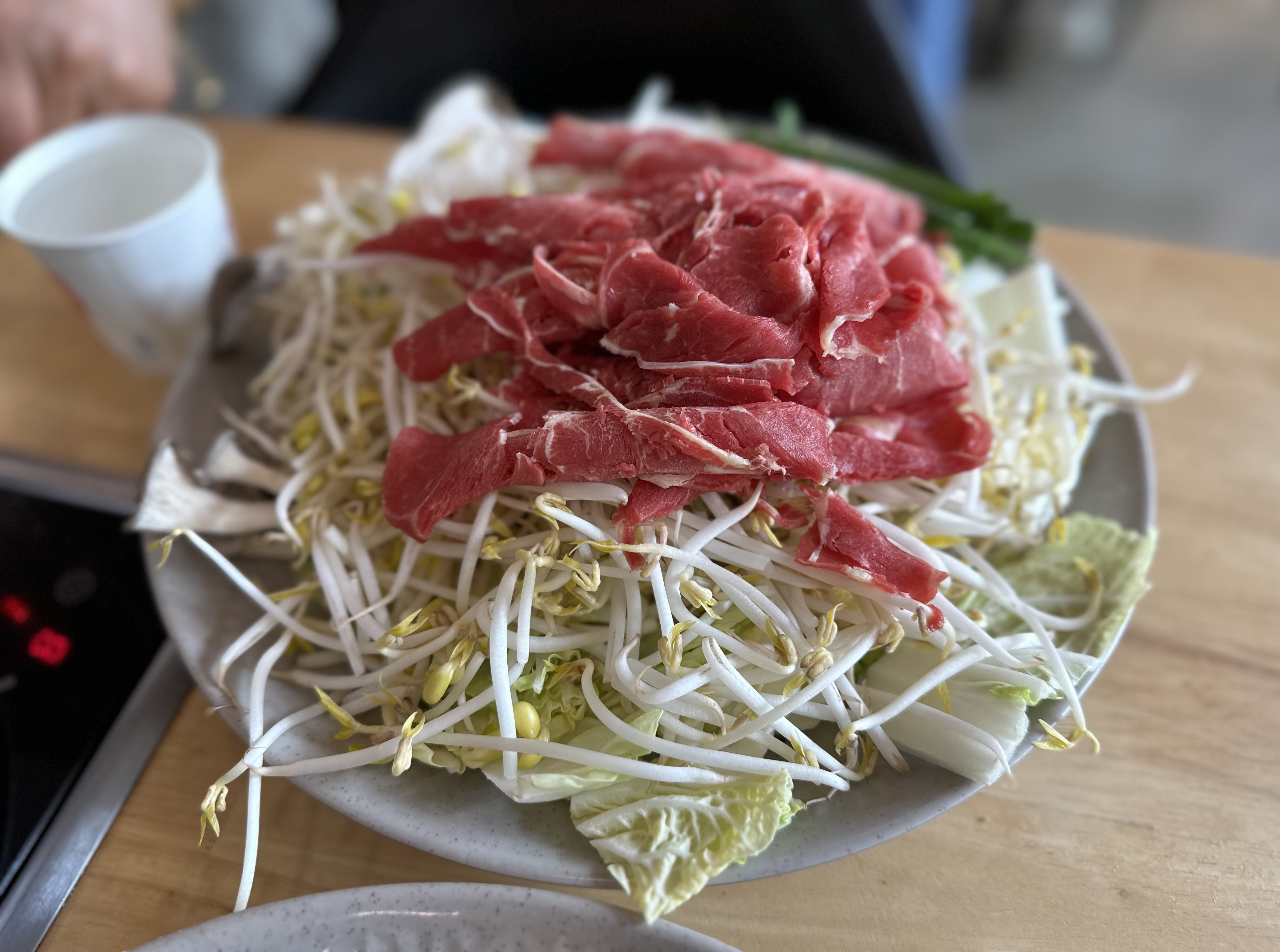 육수가 끓으면 모든 재료를 넣고 3~4분 정도 끓이면 된다고 하는데 기다리기 힘들었던 저는 물이 끓기도 전에 다 때려넣고 먹었네요. 육수냄비가 굉장히 커서 끓는데 시간이 걸렸고 사실 배가 고파 기다릴수가 없었어요.