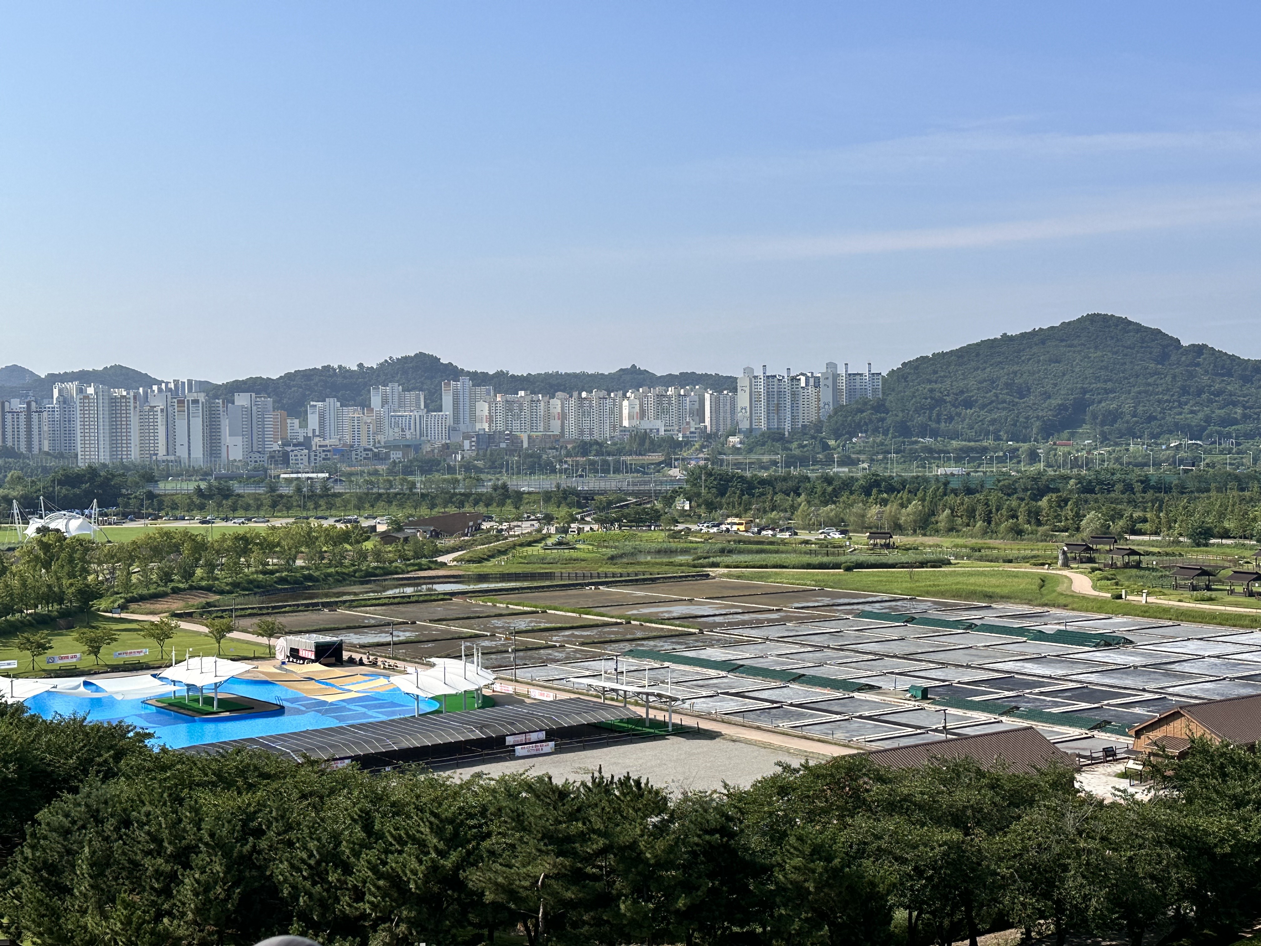 전망대에서 내려다본 갯골 생태공원의 입구 주변인데요.