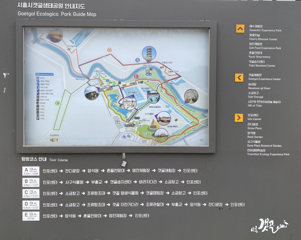 봄에는 벚꽃길, 여름에는 해수물놀이와 버네나 꽃밭, 가을에는 핑크뮬리와 코스모스, 겨울에는 철새를 볼 수 있고 굽이치는 갯벌을 따라서 반짝이는 윤슬과 다양한 새를 볼 수 있습니다.