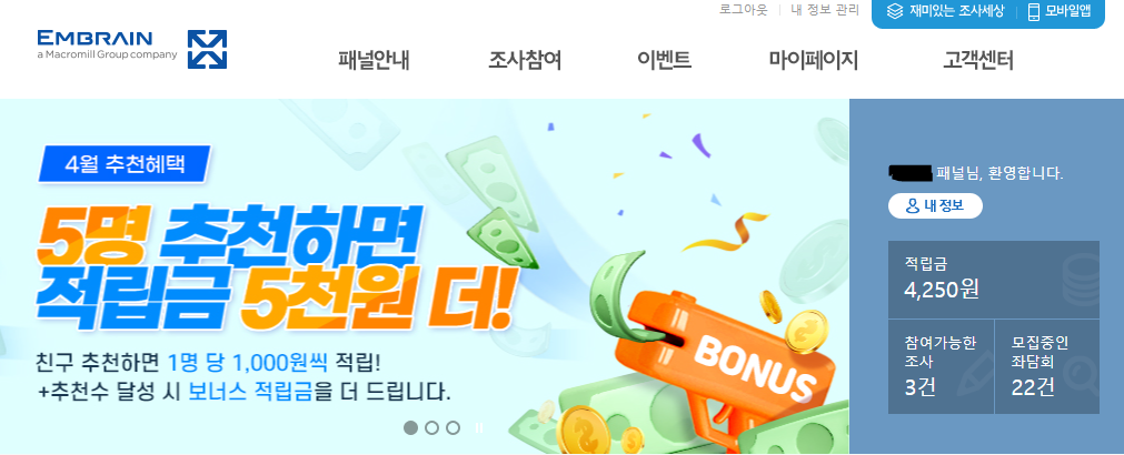 바로 엠브레인 패널파워 입니다. 이 사이트는 리서치 사이트인데요.