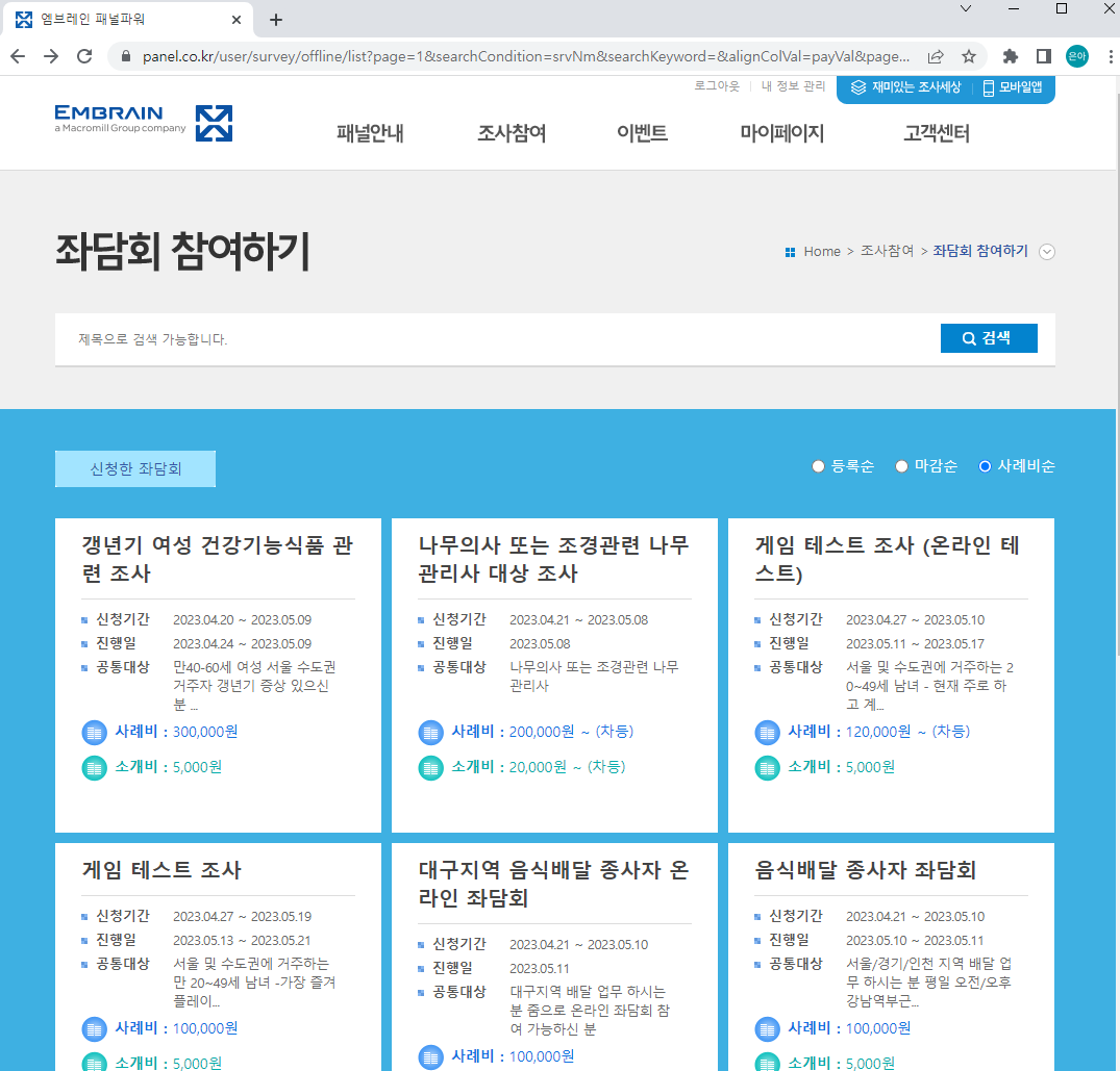 시간과 대상조건에 맞는 좌담회에 참여할 수 있으면 몇 만원의 수익까지 발생하니 괜찮은거 같아요.