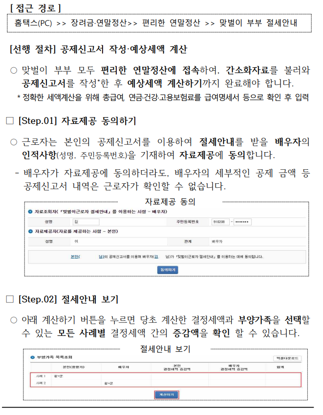 홈텍스에서 맞벌이 절세 시뮬레이션 프로그램이 열리니 확인해보세요.