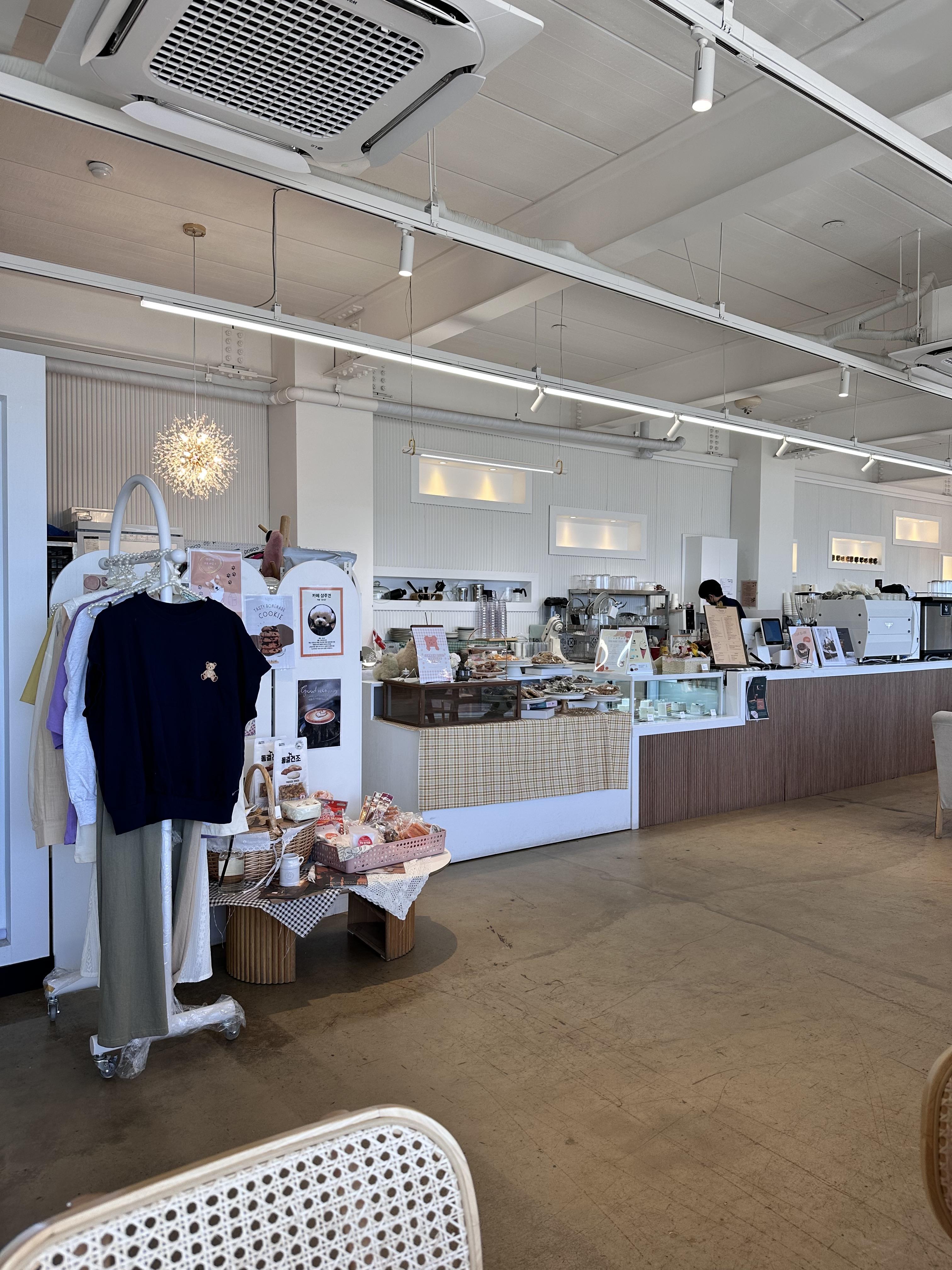 입구쪽에는 의류와 악세서리들이 있었고 쿠키와 스콘, 케이크 종류도 판매를 하고 있었습니다.