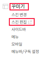 3. 내 티스토리 블로그의 관리자에 들어가서 꾸미기 → 스킨편집을 클릭합니다.