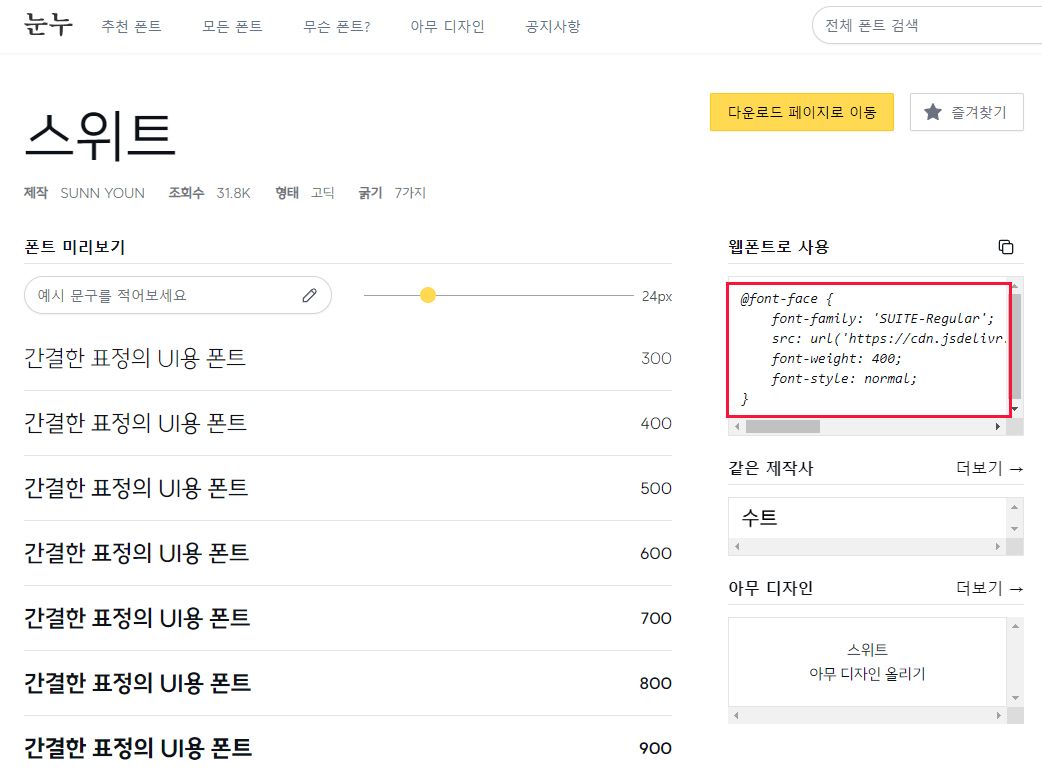1. 눈누 사이트에 들어가서 원하는 폰트를 선택합니다.
