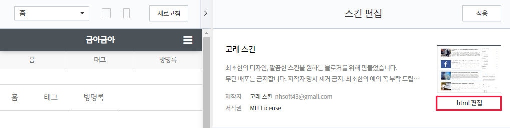 4. html 편집으로 들어갑니다.