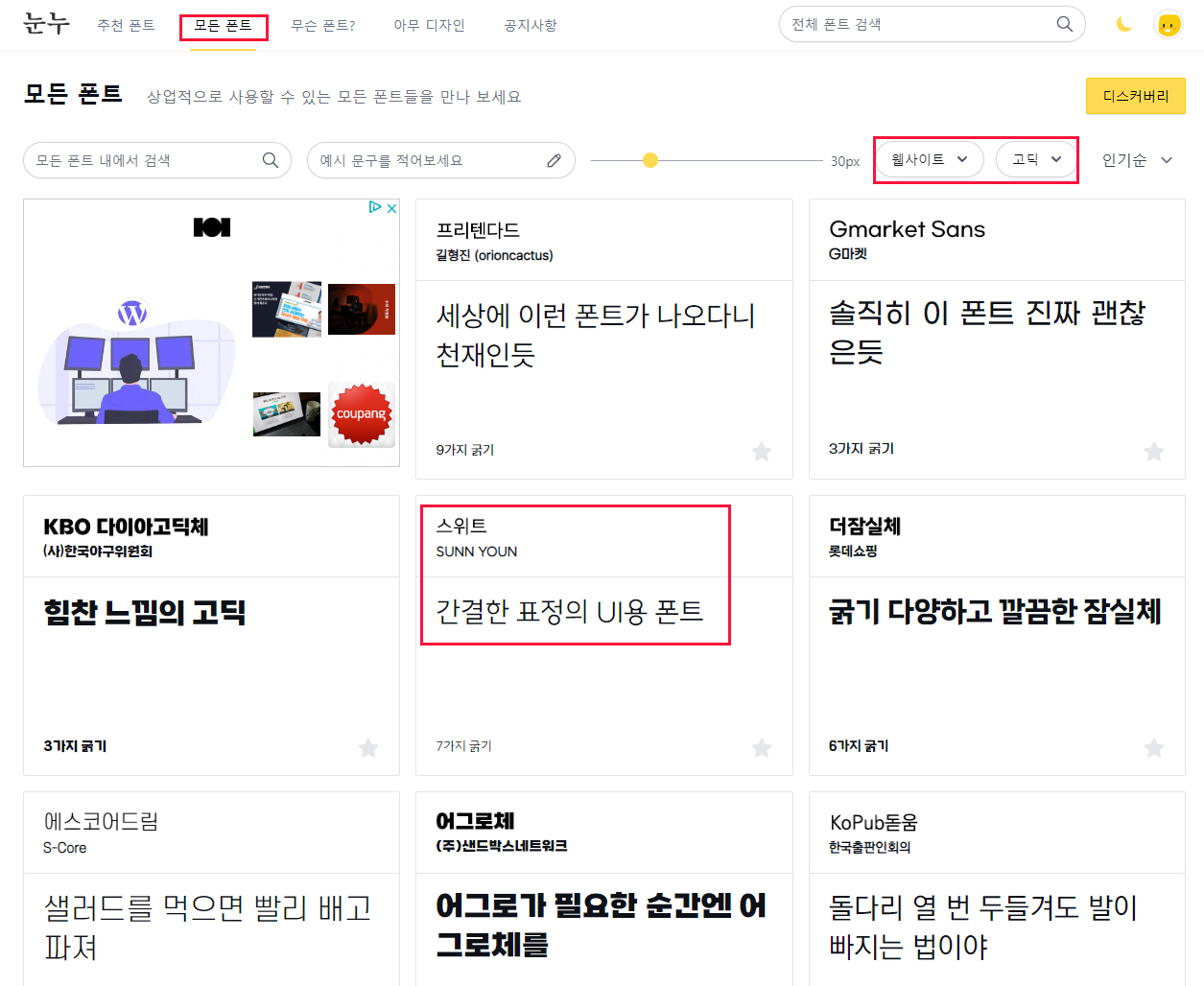 저는 고딕에서 스위트 폰트를 적용해보려고 합니다.